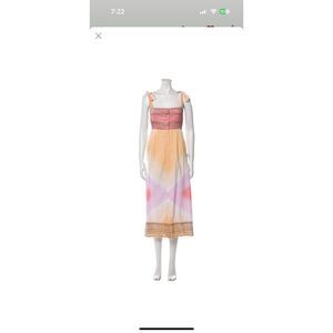 For sale is this Juliet Dunn Tie Shoulder Cotton Midi Dress Orange Mango Pink Tie Dye Size 1 US 4 Small. This dress is in great condition!