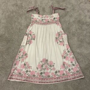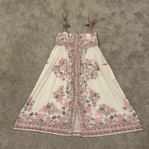 J uliet Dunn Tie Shoulder Dress With Rose Border, White and Pink size large NWOT