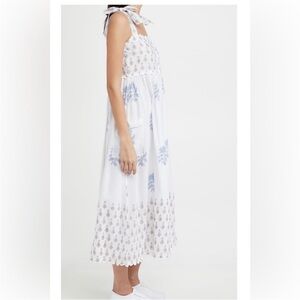 Juliet Dunn sailor blue gold rose tie shoulder maxi dress size medium/large NWOT