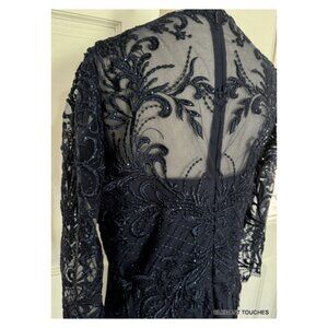 Juliet Womens Plus Bead Tea Length Dress 18W Navy Blue Sheer Lace Modest Midi 1X