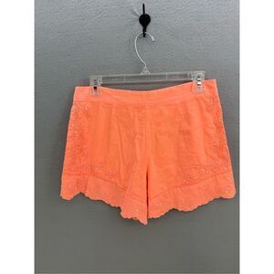 Juliet Dunn London Womens Orange Tonal Hand Embroidery High Waist Shorts Size 6