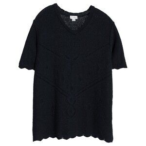 Julietta (Austria) Vintage Open Eyelet Crepe Knit Scalloped T Sweater : L