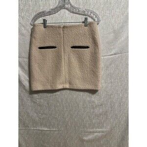 Juliette Longuet pale pink lined wool skirt, rear faux pockets w/ leather trim,