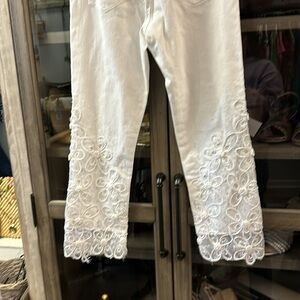 Juliette White Denim Pants with Lace & Embroidery Size 6