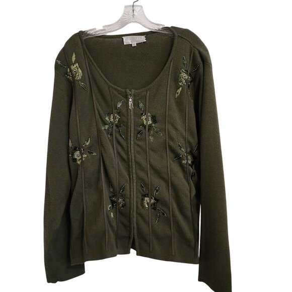 Juliette Womens Green Embroidered Zip-Up Sweater With Beaded Details XXL