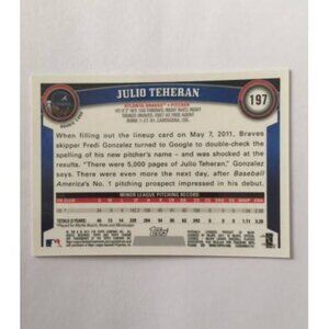 Card in Mint to Near Mint...Julio Teheran 2011 Topps Chrome Auto Brave #197...Any questions please feel free to ask...