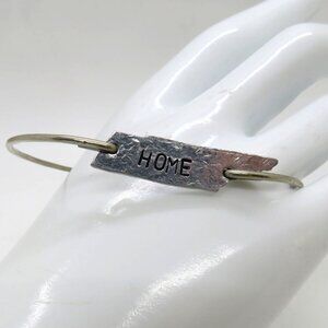 Simple and elegant bracelet with "Home" engraving and a hammered finish. Lightweight and adjustable design for a comfortable everyday wear.