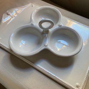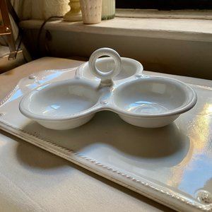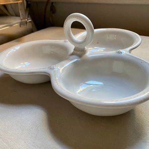 This sectional serving dish is a trio of ceramic serving bowls with a ring-shaped handle - great for serving cocktail snacks and spreads.