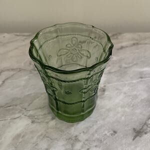 This exquisite Juliska Colette Green Tumbler is a rare find from a retired pattern, perfect for collectors or those who appreciate timeless glassware.