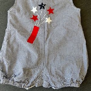 July Fourth Memorial Day Boys Romper Fantasia Too 9M 9 months seersucker romper