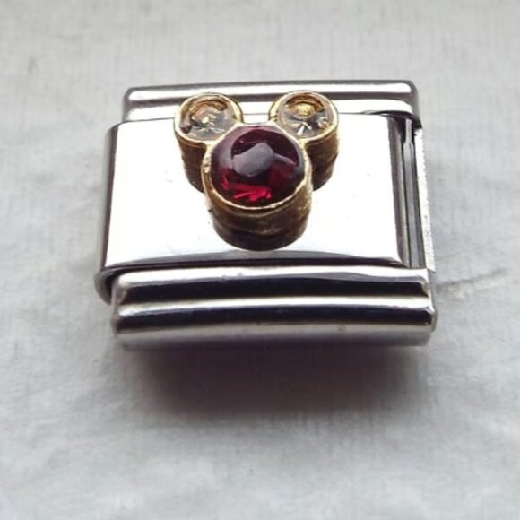 New never used 9mm stainless steel Italian charm with raised July birthstone mouse ears on it. Fits all standard 9mm Italian charm bracelets,thanks for looking!