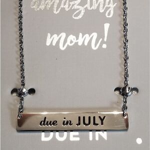 New Due in July Engraved Stainless Steel Necklace. Adjustable 16"- 22" length. BRAND NEW, only taken out for the photos.