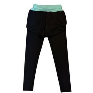 July's Song Black & Green Leggings With Shorts Overlay Size Medium