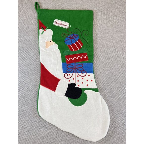 Jumbo Hobby Lobby Santa Merry Christmas Stocking 29" Let It Snow Green Felt