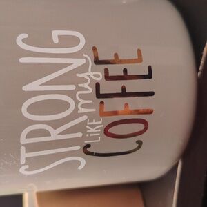 Jumbo Oversized Coffee Mug 18 oz Strong like my coffee Grey White Gold CUTE FUN