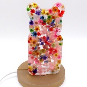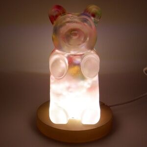 Handmade resin jumbo gummy bear and base lamp that can be plugged into a USB adapter.