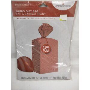 Jumbo gift bag, American Greetings, red and white, chevron pattern, heavy-duty plastic, cord tie, large gifts, presents, gift wrapping, for you, holiday bag, packaging, party supplies