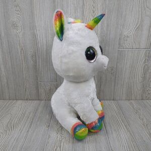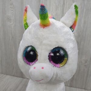 Jumbo Ty Beanie Pixy White Unicorn Rainbow Sparkles 16"