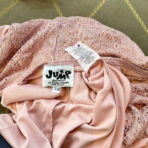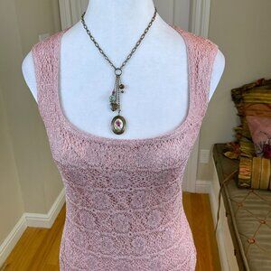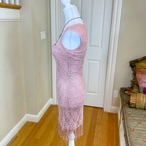 Beautiful knit y2k style pull on dress, knit crochet layer over lining, pink metallic, boho