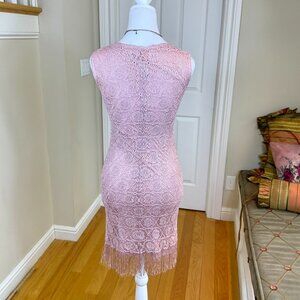 Jump Apparel Dress Y2K Pink Metallic Knit Deep Square Neck Fringe Hem (7/8)