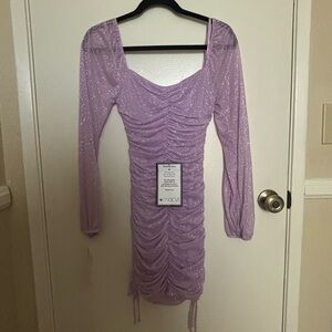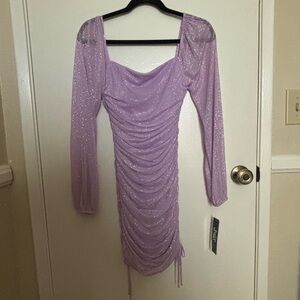 Jump Apparel Glitter Blouson-Sleeve Ruched Dress