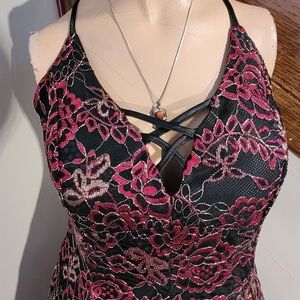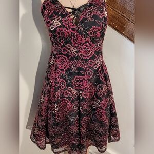 Jump Apparel Red, Gold, Black Rose Floral Prom Dress Size 5/6