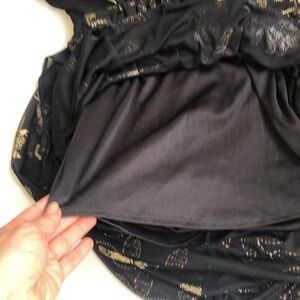 Jump Apparel by Wendye Chaitin Black & Gold Dress. Only worn once and in great condition. The dress has a sheer layer over a short skirt. It has a beautiful gold design. The back is open and the front has pads so it can be worn without a bra. Beautiful dress! Size 5/6