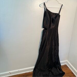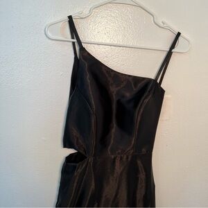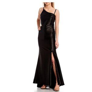 Good condition, new with nordstrom tag but there is some minor wear at bottom of hem. Jump. One-Shoulder Side-Cut-Out Slit Hem Satin Ball Gown. Black.