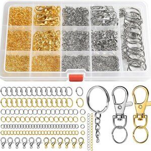 Item Type Name: Jump Rings Kit Item Height: 0.4 Inches Color: Gold, Silver Finish Type: Polished Material Type: Metal Item Weight: 0.26 Kilograms Material: Metal Number Of Pieces: 968 968PCS Jump Rings Kit: Includes 400pcs silver jump rings, 400pcs gold jump rings, with 100pcs lobster clasps, 40pcs necklace extenders, 28pcs keychain clips and key chain rings, all packed neatly in a sturdy plastic case with compartments, no spillage. Perfect jewelry making kit for jewelry making, keychains making. Assorted Sizes Jump Rings : 4mm, 6mm, 8mm jump rings for choosing, there s always one proper size to satisfy your need. Silver jump rings and gold jump rings included at the same time, well match different jewelry & keychains. Total 800pcs, ensures real pleasant crafting experience! Sturdy & Easy to Use: Made of premium metal, these jump rings for jewelry making are sturdy and long-lasting for various crafting purpose, also well crafted, with shiny and rust-free appearance, looks exquisite. Plus all jump rings are flexible, can be opened easily, fairly use-friendly, great for repairing jewelry. Other Accessories for Jewelry & Keychains Making: Come with lobster clasps for jewelry making, chain extenders for necklaces, Keychain clips with key rings, and key chain rings with chain. All of these are indispensable accessories for jewelry making and keychain making. Thoughtful and convenient! Versatile for DIY Craft Projects: For making homemade jewelry like earrings, necklace, bracelet