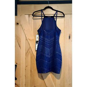Jump Sheath Dress Navy Silver Medium Junior's Studded Halter Slim Social $69