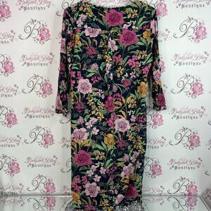 Jump dress long sleeve flowers Floral Midi Dress - Black, Pink, and Gold
