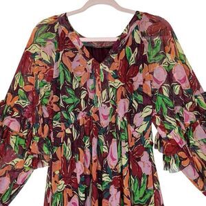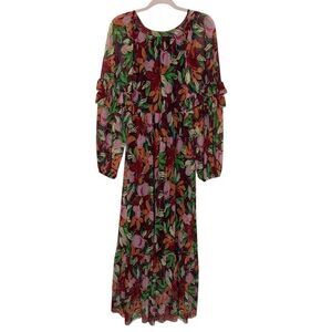 Jump Apparel Burgundy Floral Ruffled Slv Tiered Maxi Dress Sz M Boho