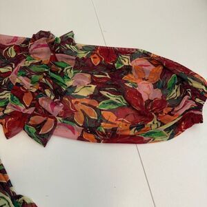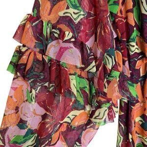 Gorgeous maxi dress with a rich. Plot combination and feminine details. The brand label and size are missing. In excellent condition.