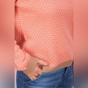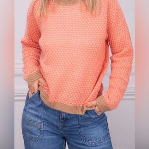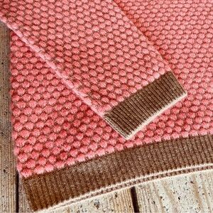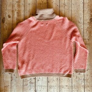 Jumper 1234 Cashmere Sweater Coral Pink and Tan Textured Knit Turtleneck Large