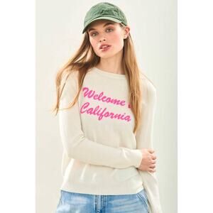 Jumper 1234 Cashmere Welcome to California Sweater in Cream Neon Pink SZ 2 Small