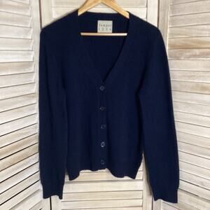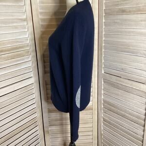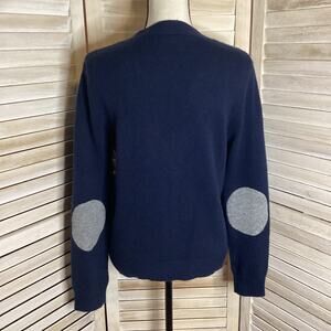 Jumper 1234 Navy Heather Gray Elbow Patch V Neck Cashmere Cardigan 2 M