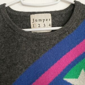 Jumper 1234 Sweater Pullover Women XS Gray 100% Cashmere Striped Star Luxury
