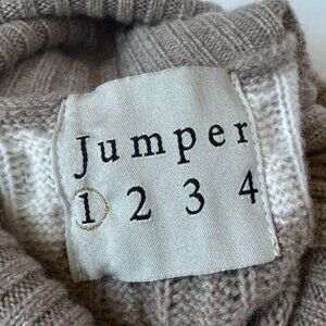 Jumper 1234 Womens S 100% Cashmere Stripe Sweater Turtleneck Roll Neck Tan Cream