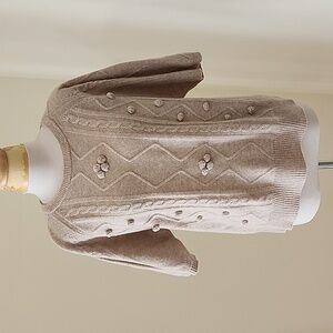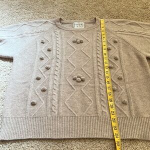 Jumper 1234 cashmere buff short sleeve Aran crew hand applied bobbles cable sweater. SZ 2, Excellent condition and sold out size.