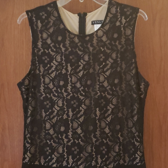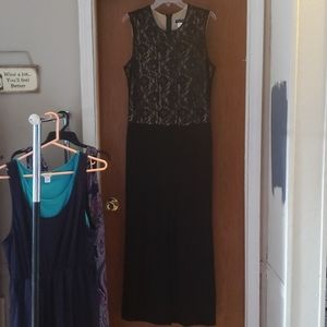 One piece jumper..black lace with tan behind the bottom is pants not a skirt. Worn once