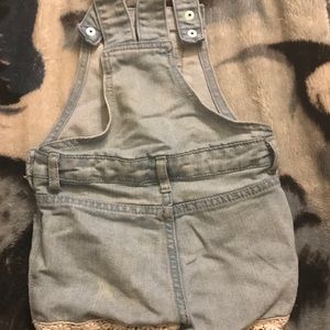 Washed denim jean jumper with lace at the leg for girl toddlers