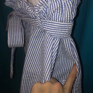 Jumper suit white top stripped shorts nothing tore or worn out , in perfectly good shape.
