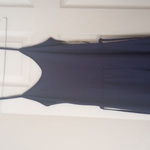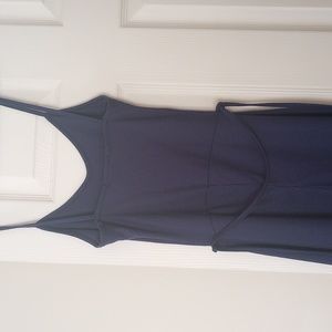Navy blue spaghetti strap jumper with wide leg. The top portion of the jumper is fitting with some stretch. very comfy and in perfect condition.