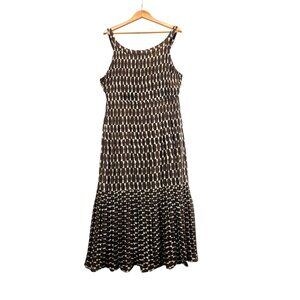 Jumper Dress Brown White Maxi 8/20 Avenue Geometric Tribal Print African Party