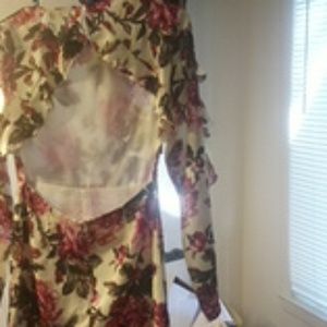 A pretty floral jumper shorts with the back out cream, dark red, and dark green