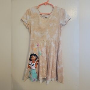 Lot of 2 6x jumping bean girls' short sleeve dresses. The first dress isnorange with flowers and butterflies. The second dress has Maribel from Encanto.