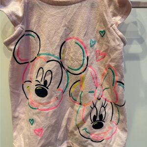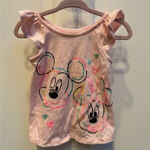 Jumping Beans 12M Girls Pink Sparkly Mickey & Minnie Mouse Short Sleeve Blouse