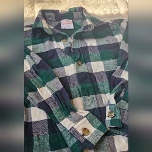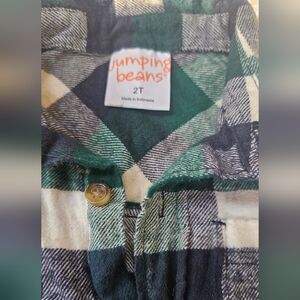 Excellent condition Jumping Beans Boys 2T Flannel button up shirt. Worn once for photos. Green, blue, and white checkered.