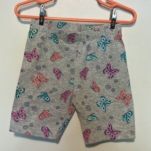 NWT Jumping Beans girl's short sleeve tee - bright peach slub with cap sleeves. Grey butterfly bike shorts (new without tag)