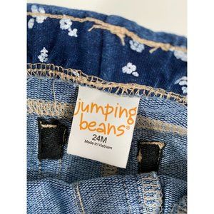 Jumping Beans Girls Toddler Blue Jeans, Size 24M, Flower Print, Elastic Waist, Pull On. Cotton Blend.